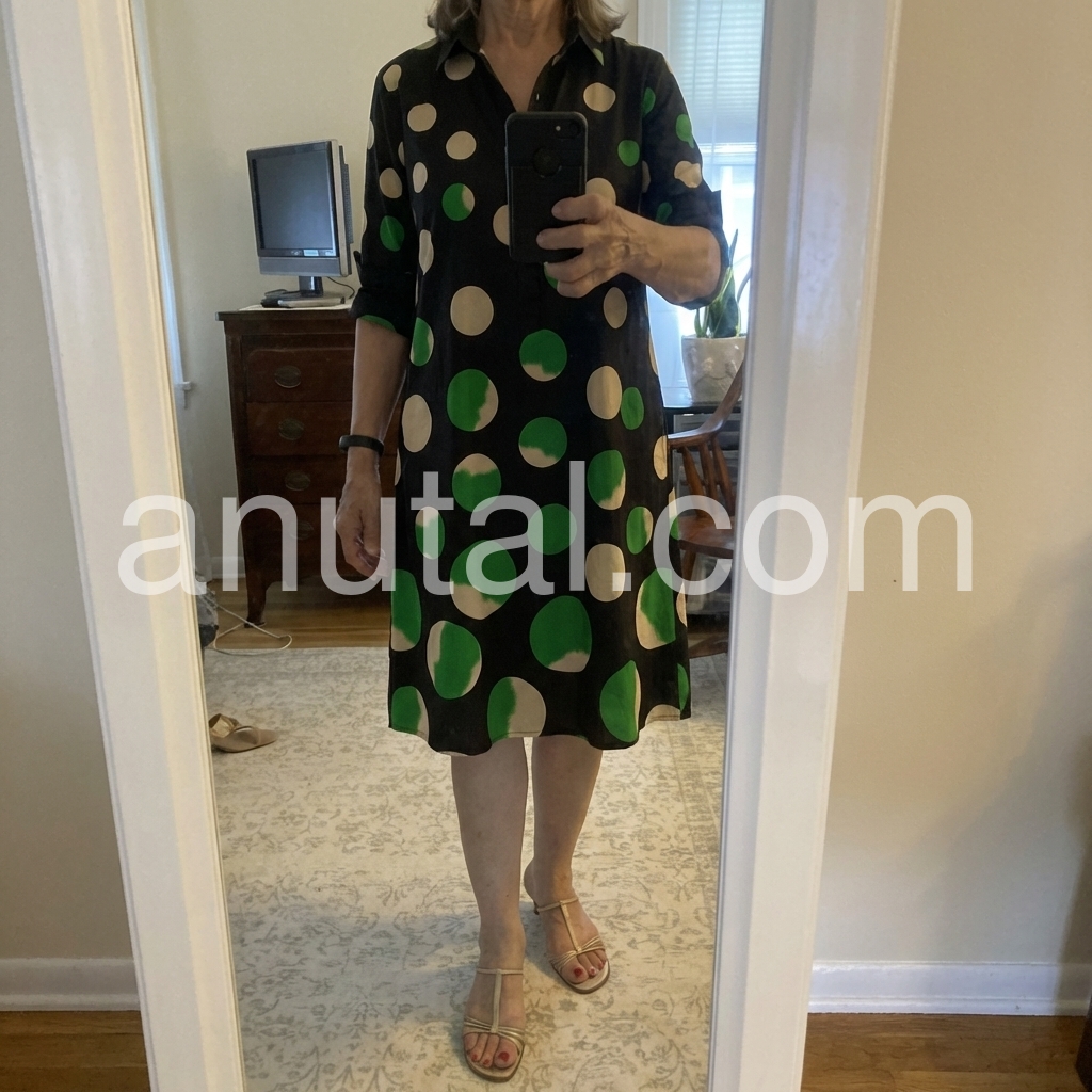The gradient effect on the polka dots is such a fun and artistic touch. It makes the dress look like it came from an expensive boutique. The fit is incredibly comfortable and the half-button front is very flattering.