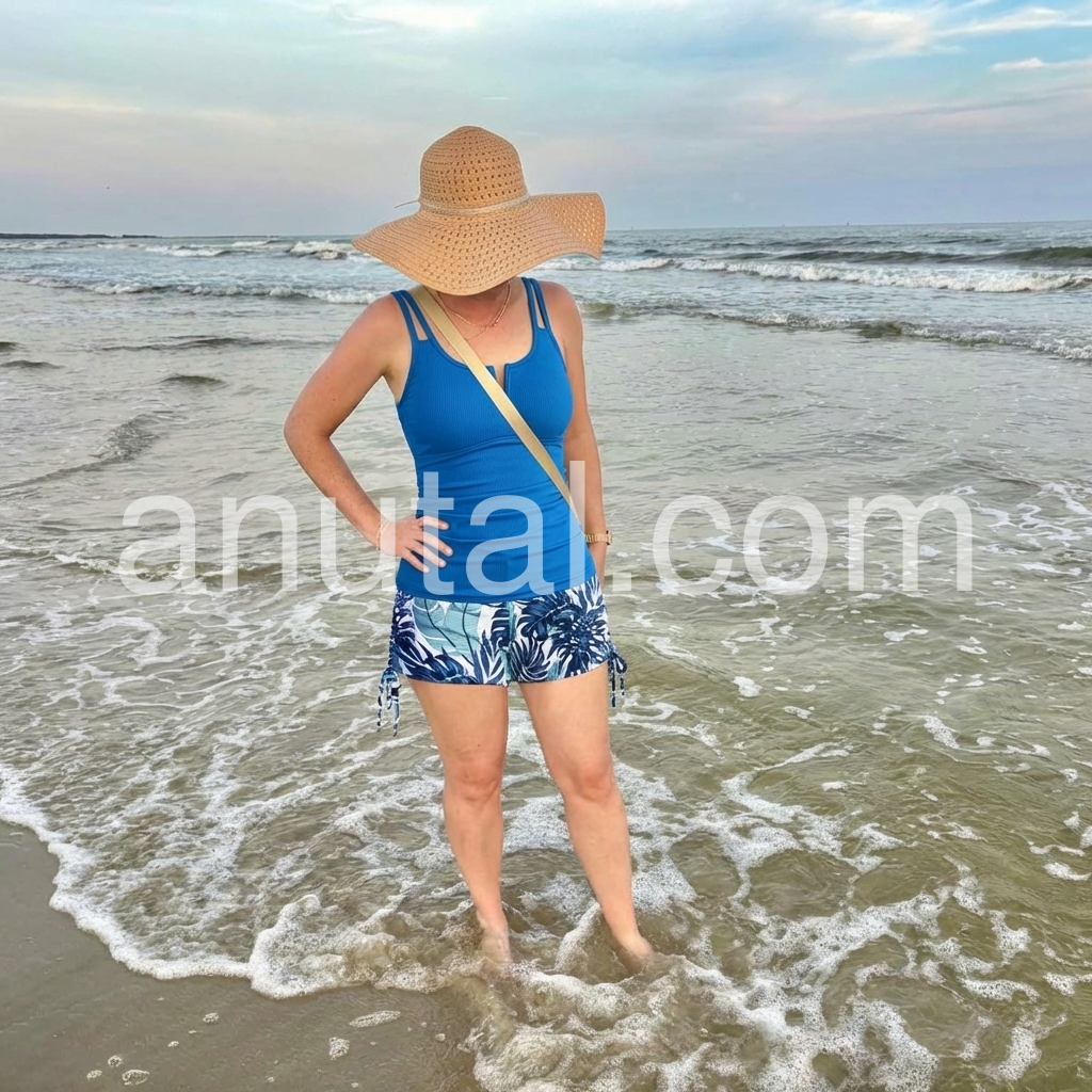 I absolutely love this swim set! The blue tank is super flattering and fits comfortably without feeling too tight. I wore it at the beach for hours and it still looked great. The drawstring shorts are a perfect match—light, stylish, and easy to move in. Overall, it feels like a high-quality summer outfit.