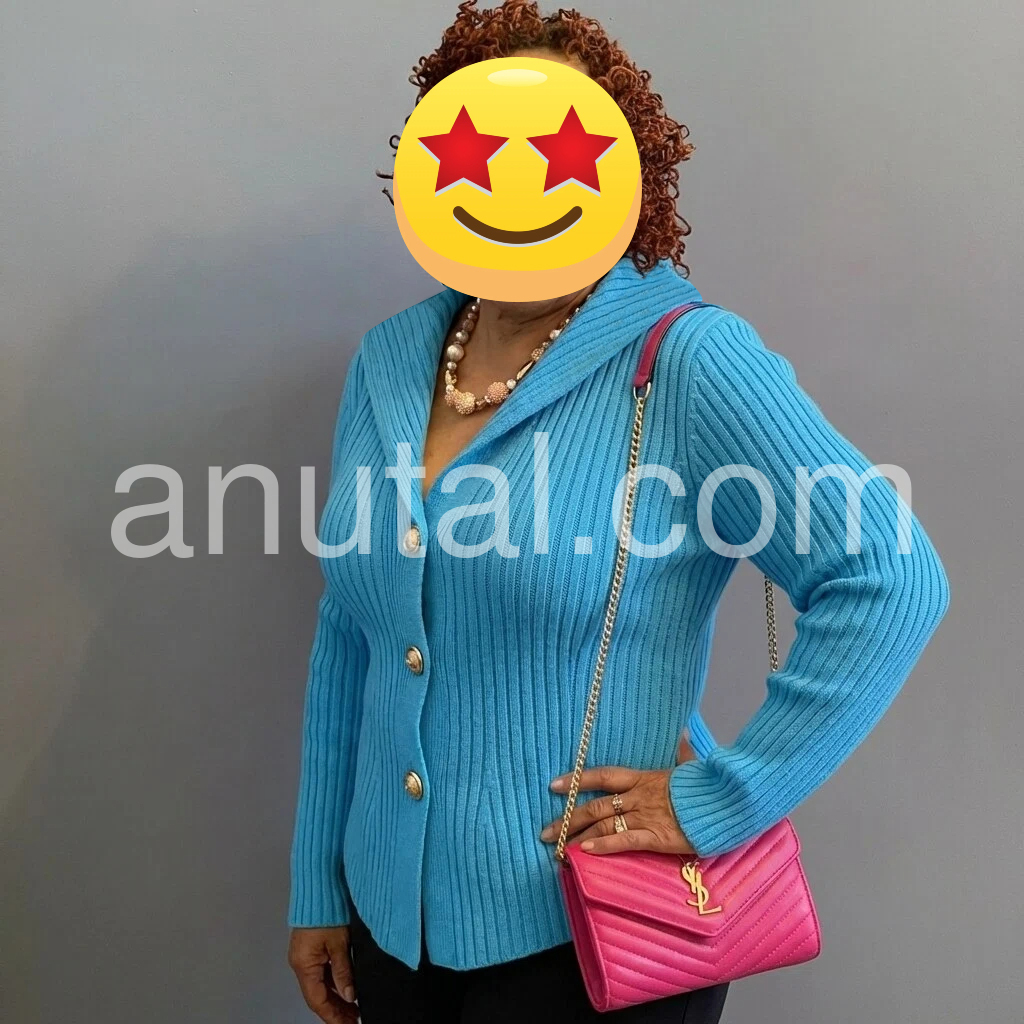 I absolutely love this sweater! The bright turquoise color is perfect for adding a fun touch to my outfits, and the ribbed knit is so soft and warm. The asymmetrical buttons are such a unique design element, and the slim fit is really flattering. It’s easy to dress up with a skirt or dress down with jeans, making it a versatile staple. The fabric is high quality and holds its shape well. Definitely worth buying!