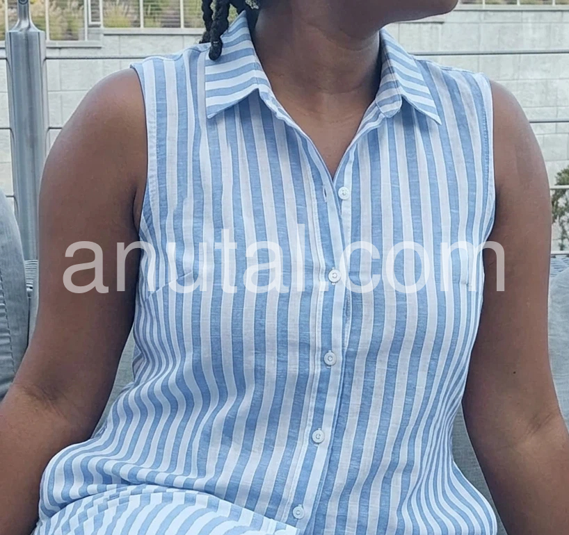 A summer wardrobe staple. I was worried the vertical stripes might look weird but they are actually very flattering. The sleeveless design is great for keeping cool. I throw a denim jacket over it when it gets chilly in the evening.