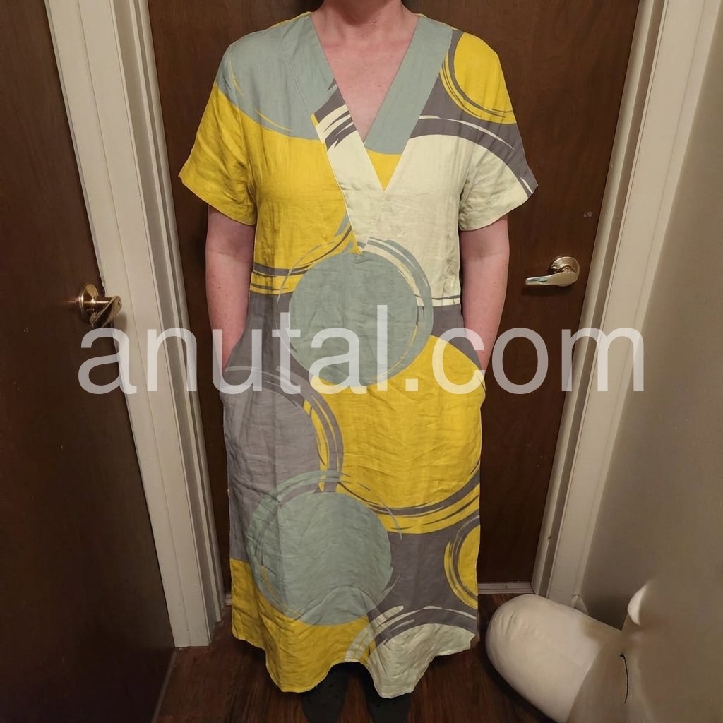 I bought this dress for my trip to Greece and it was absolutely perfect! The mustard yellow and grey print is so unique and vibrant. It looked great in photos and kept me cool in the hot sun. Highly recommend!