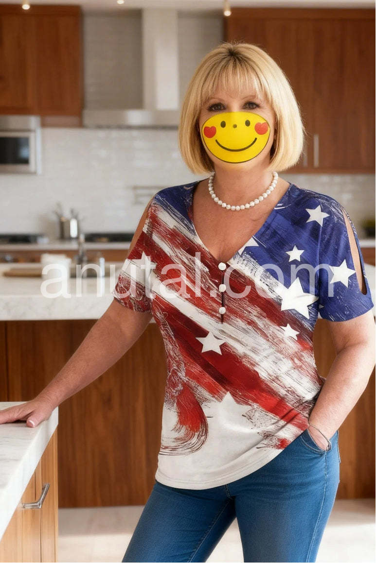 Classy Split Short Sleeve Print Top