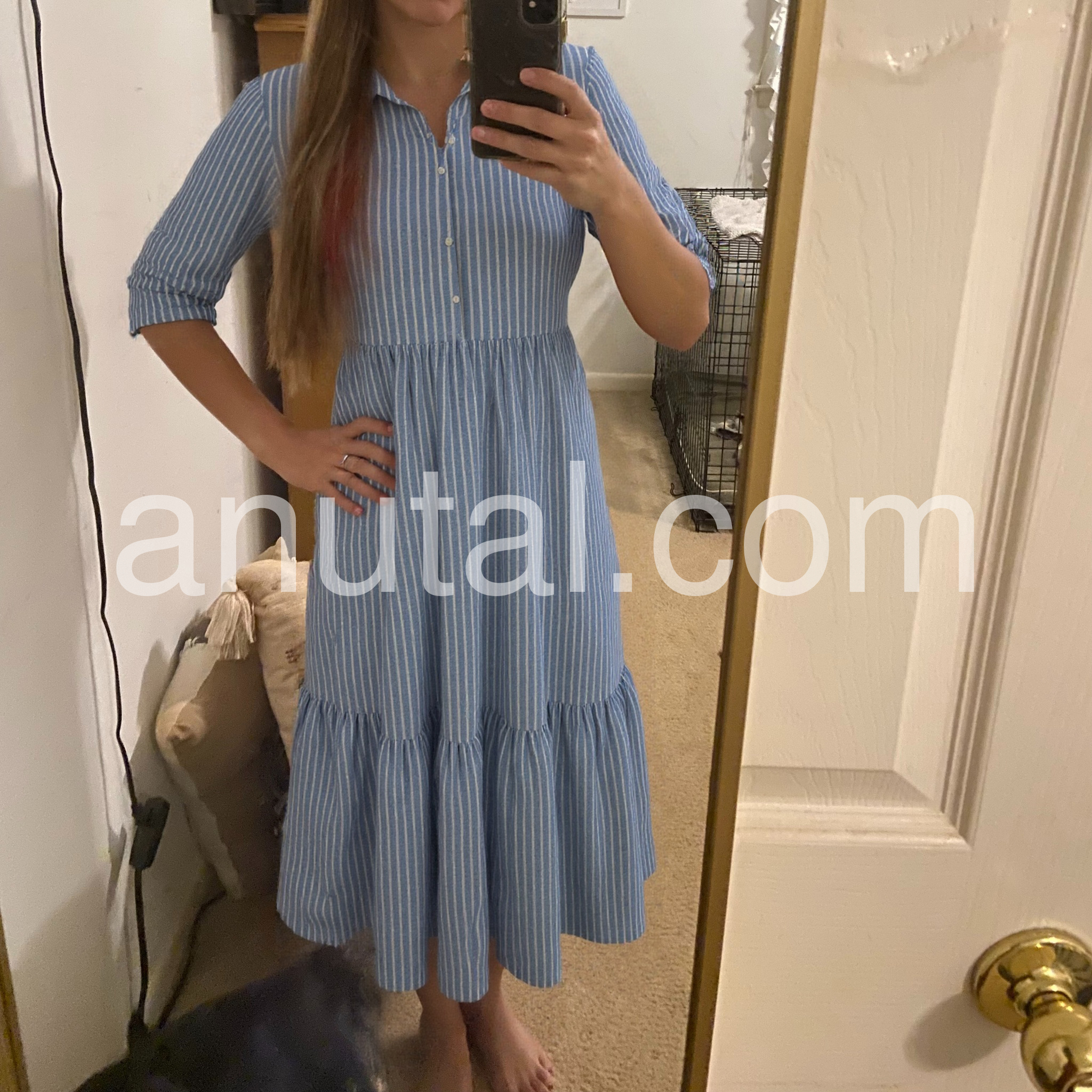 This dress completely exceeded my expectations. It is so hard to find a good maxi dress with sleeves. The tiered layers give it a lovely movement when you walk. Five stars!
